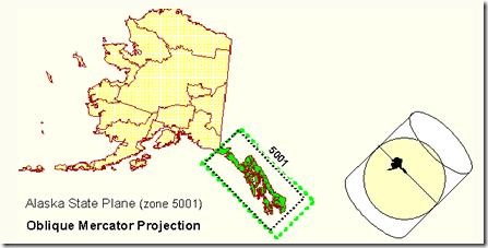 The position of the geographical area determines the aspect of a projection. Optimal is when the projection centre coincides with centre of the area, or when the projection plane is located along the main axis of the area to be mapped (see example figure below).